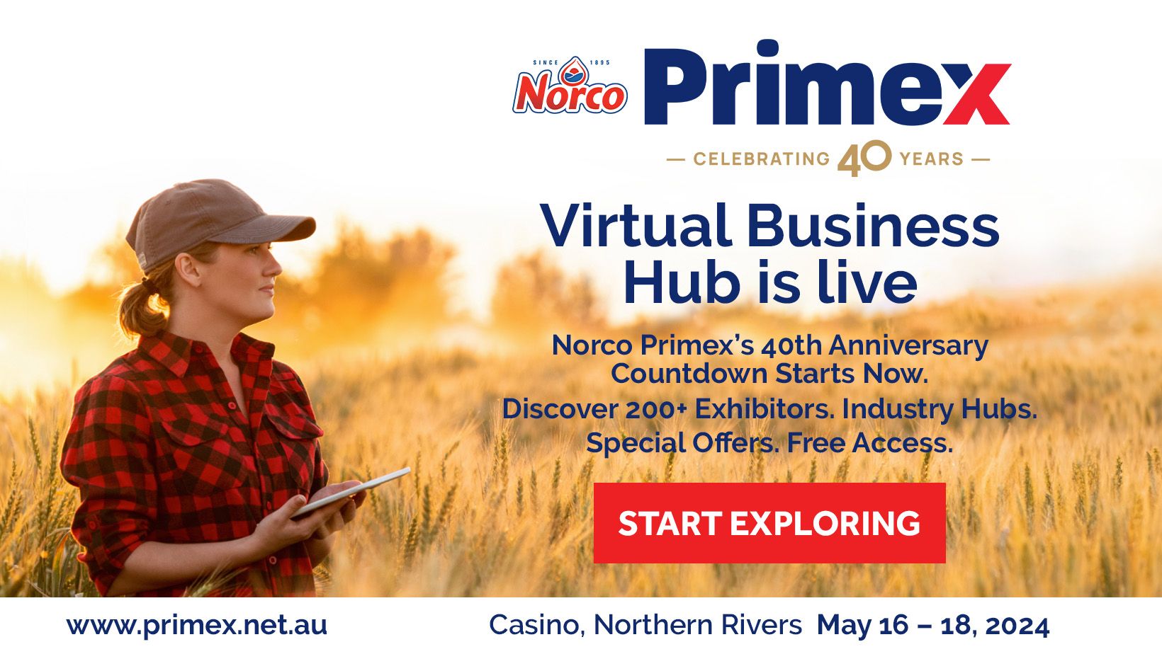 Future announcements will highlight many more new and exciting inclusions that will appeal to everyone. With over 60% of sites already secured by exhibitors, the event is on track to be the biggest in its history. The Virtual Launch marks 180 days until the milestone event, Australia’s largest coastal-based field days, showcasing the Northern Rivers to a national and international audience. The countdown to Norco Primex’s 40th Anniversary begins now!